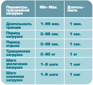 - определяемое пользователем время удержания, отдыха и вытяжения;